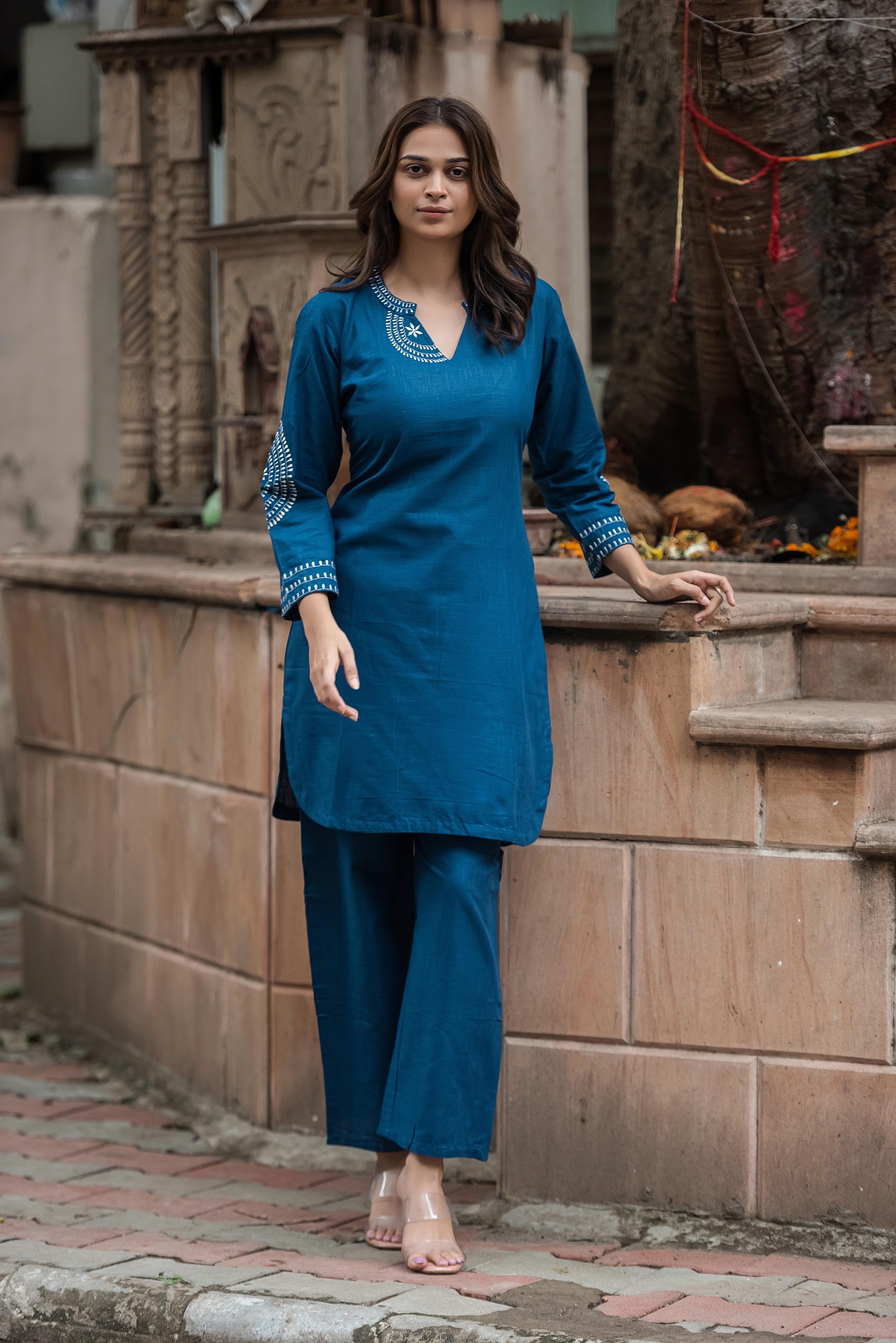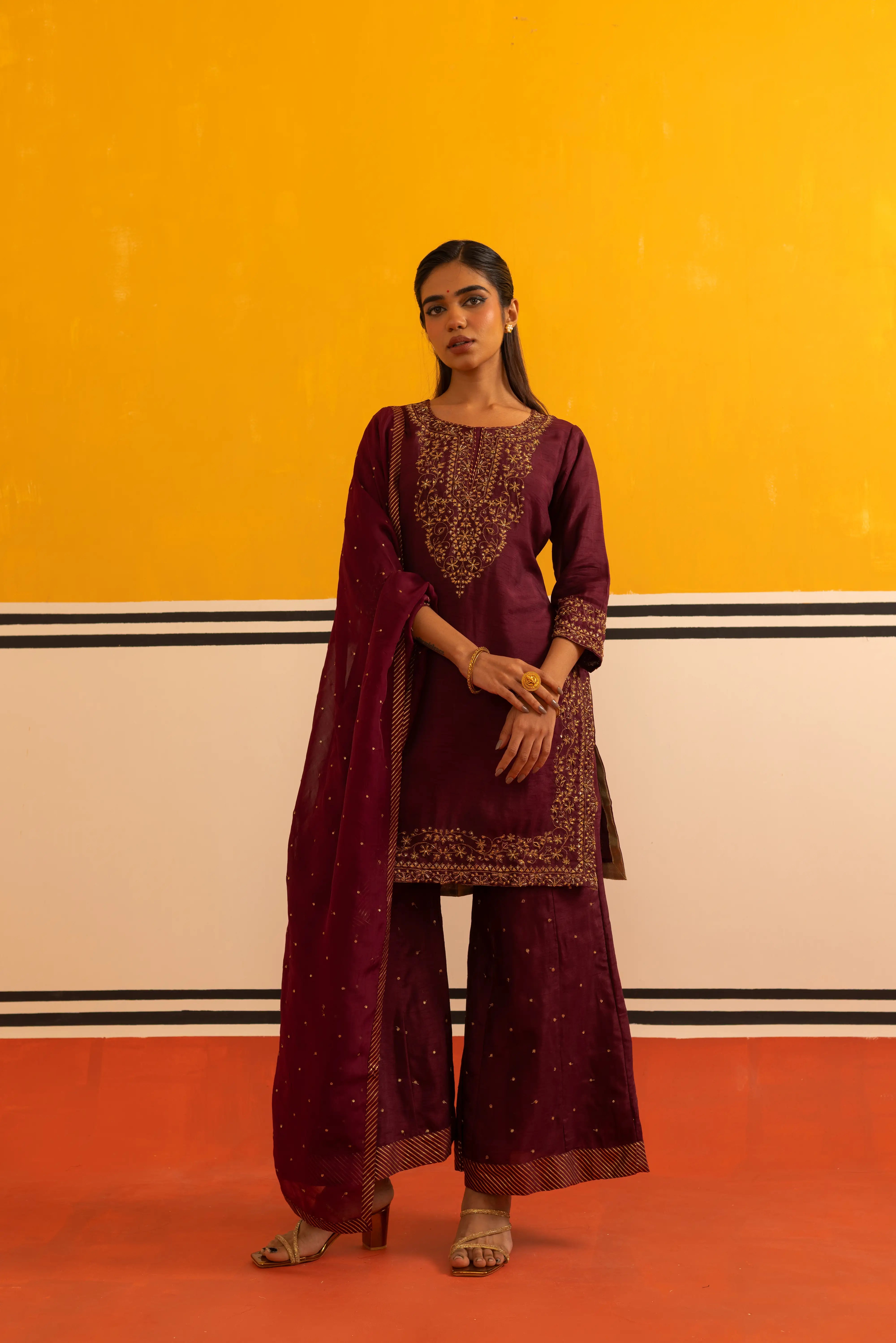 Black kalidaar suit set featuring elegant machine embroidery and a flattering round V-neck — a perfect blend of grace and timeless style.