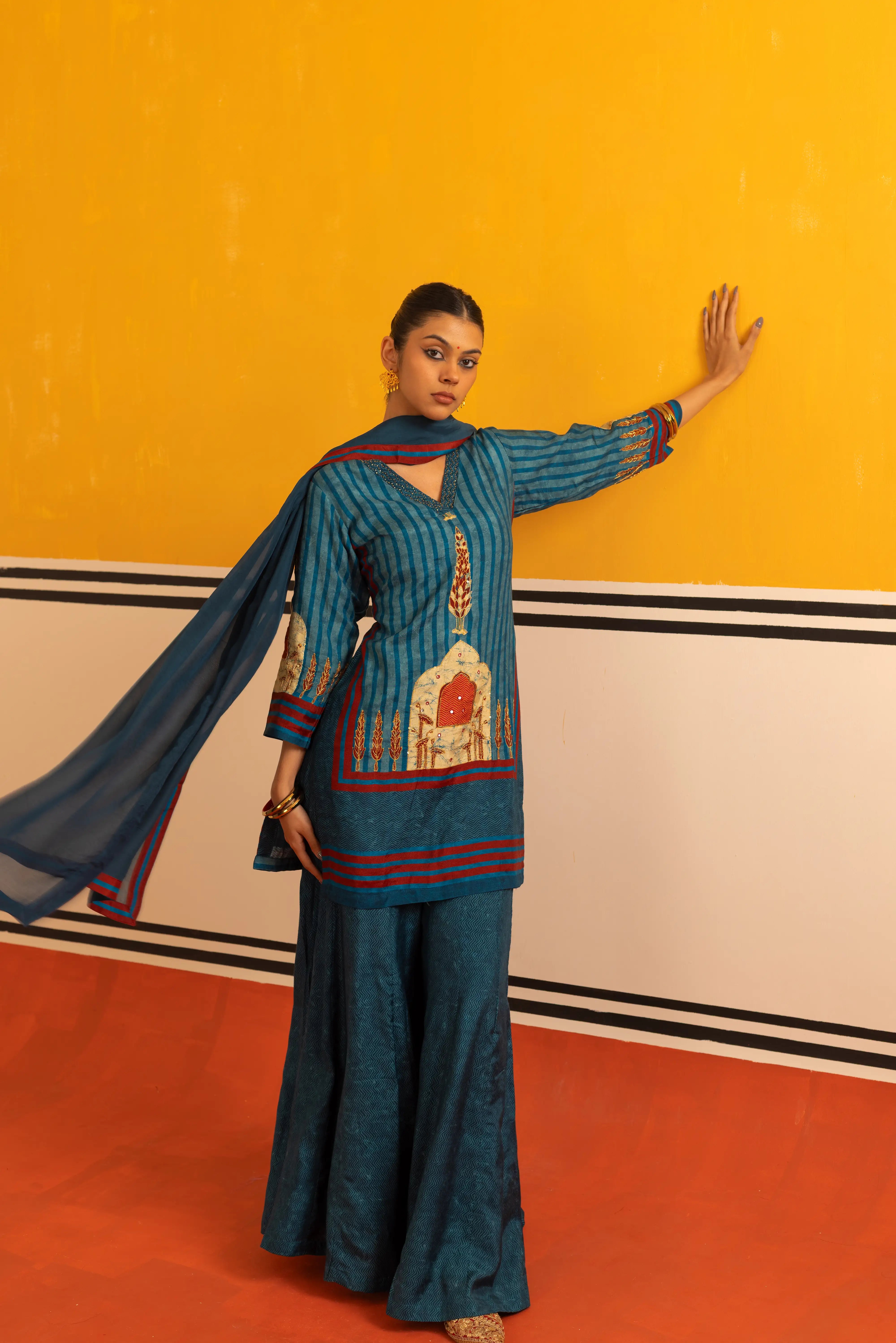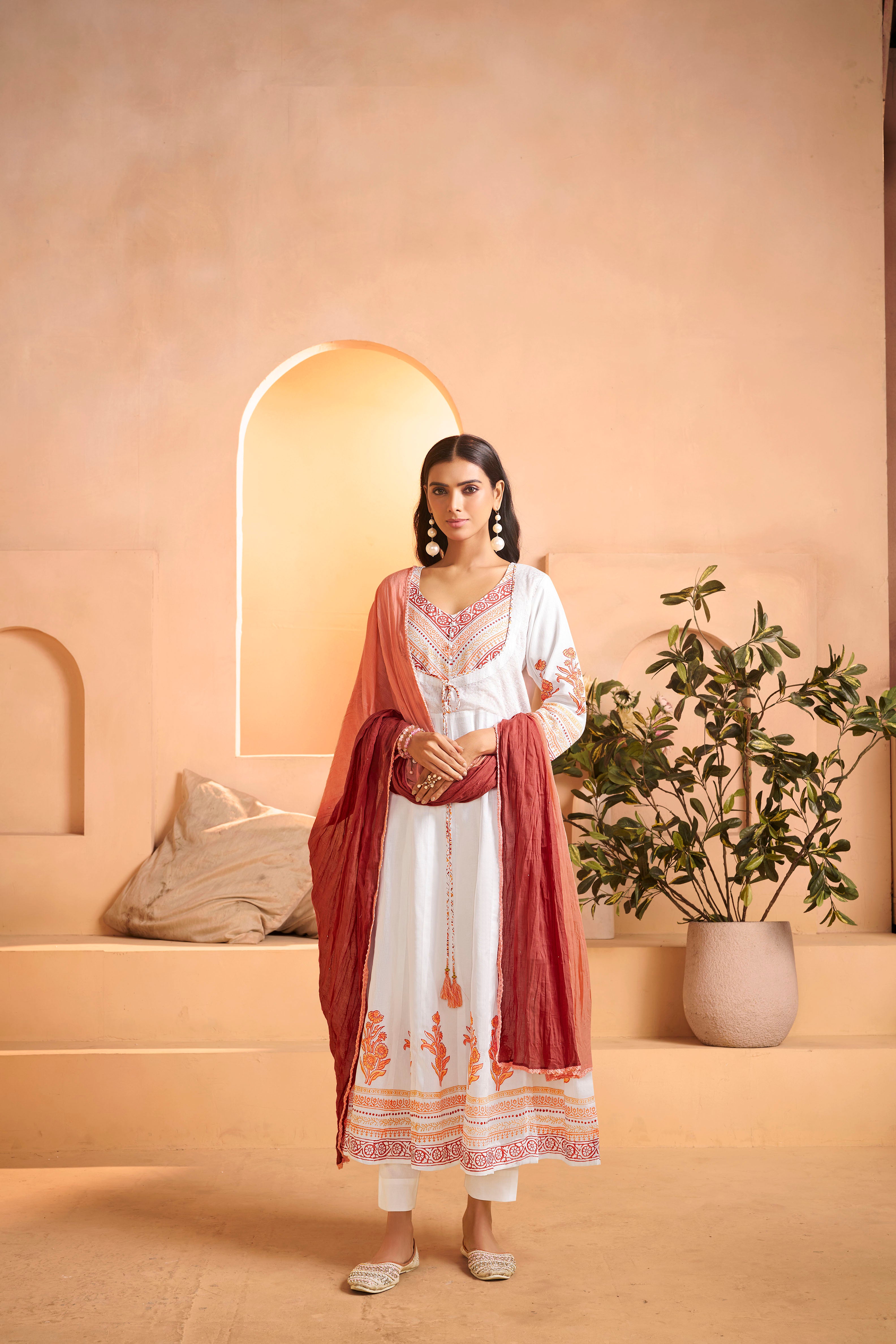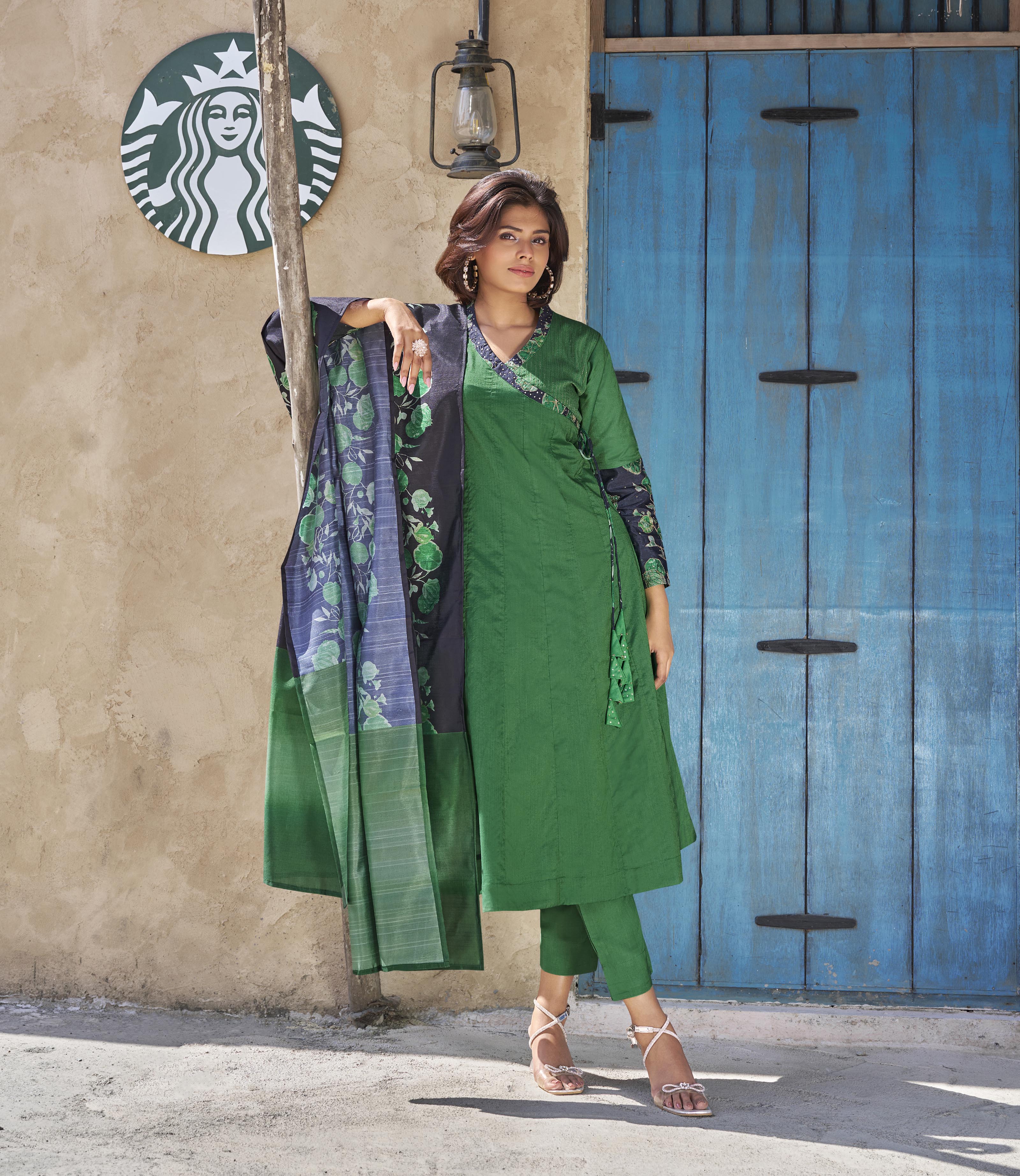 Elevate your style with our black Modal suit Set, featuring a refined V-neckline and exquisite khat work embroidery.