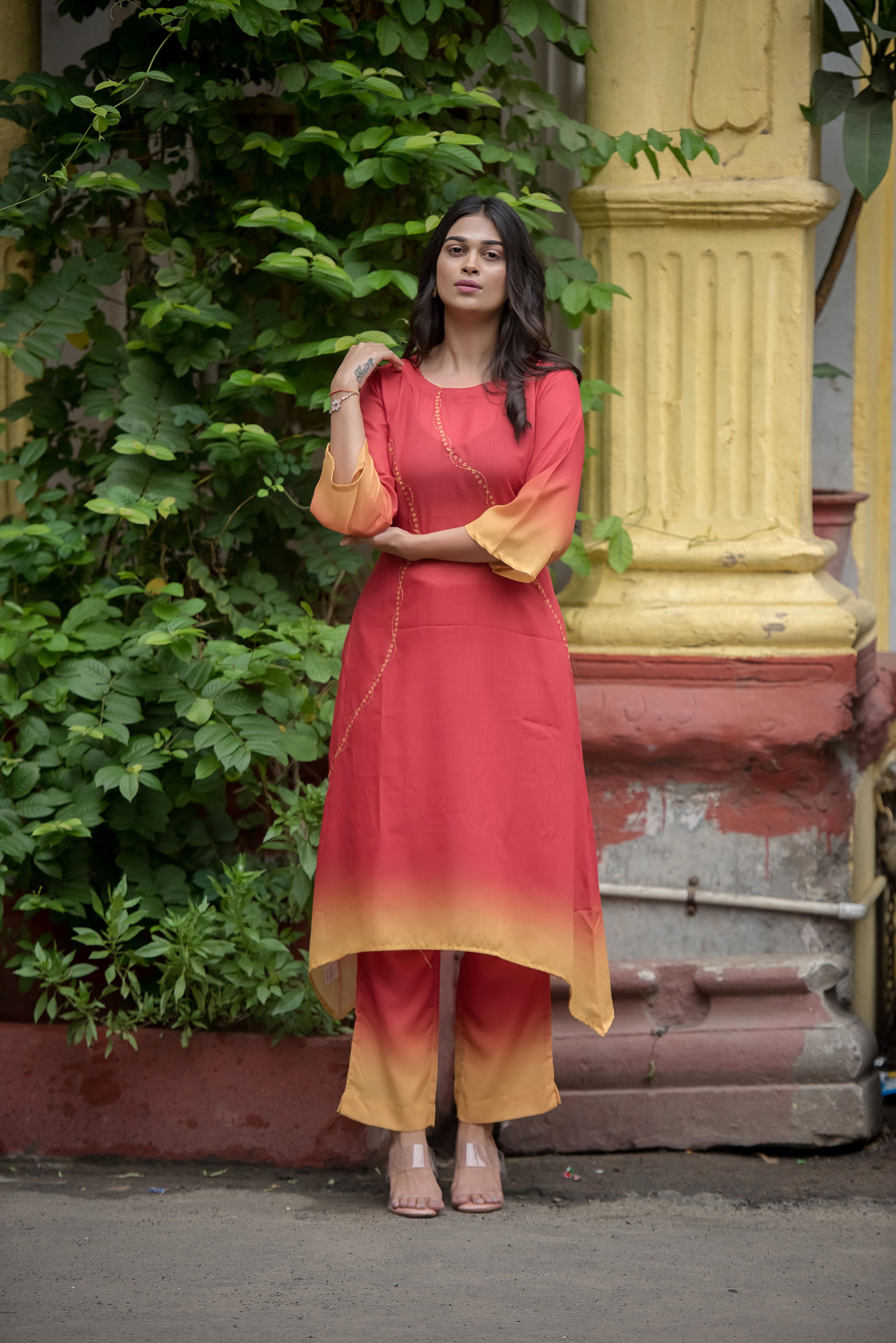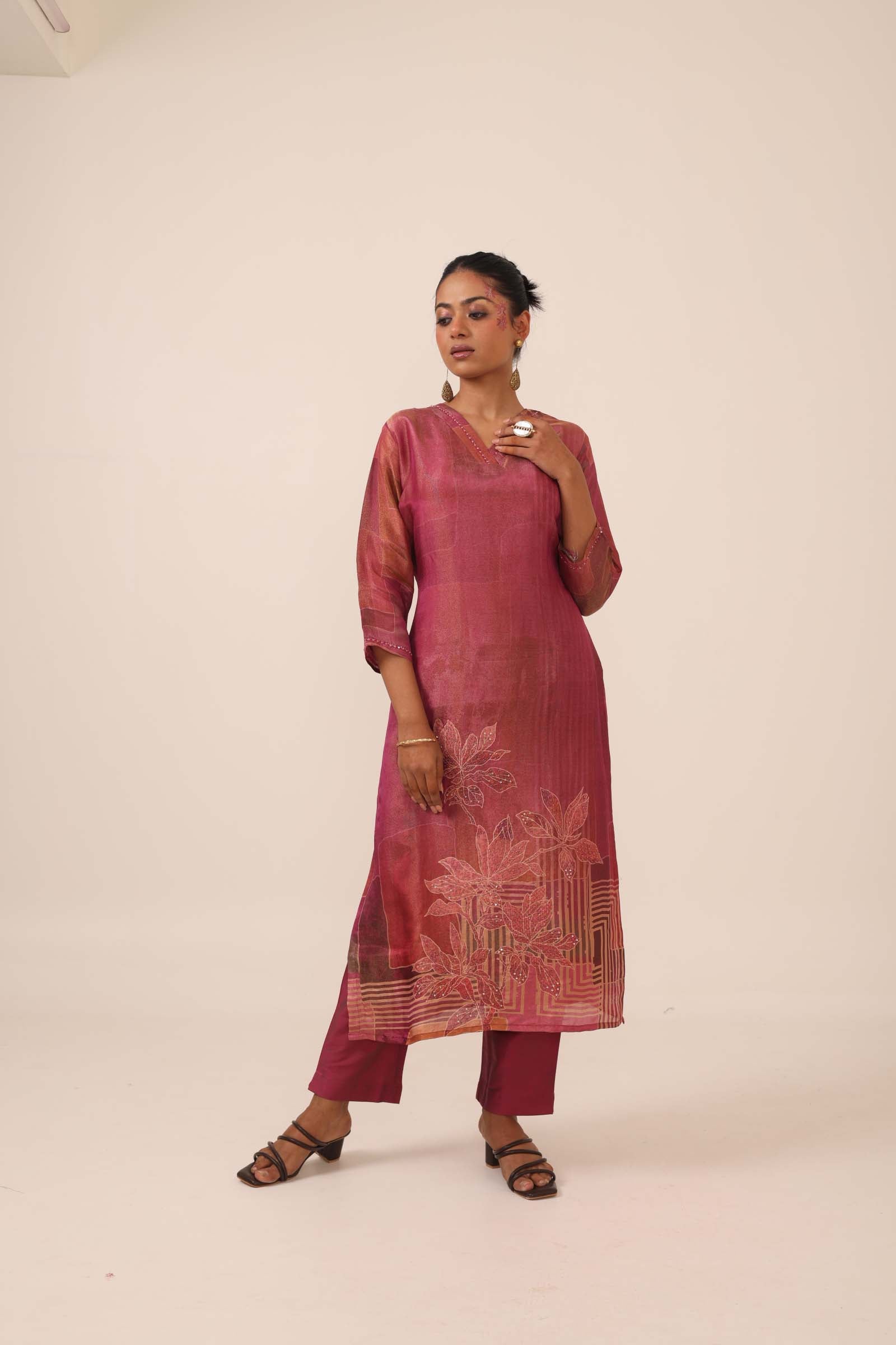 Elevate your style with our black Modal suit Set, featuring a refined V-neckline and exquisite khat work embroidery.