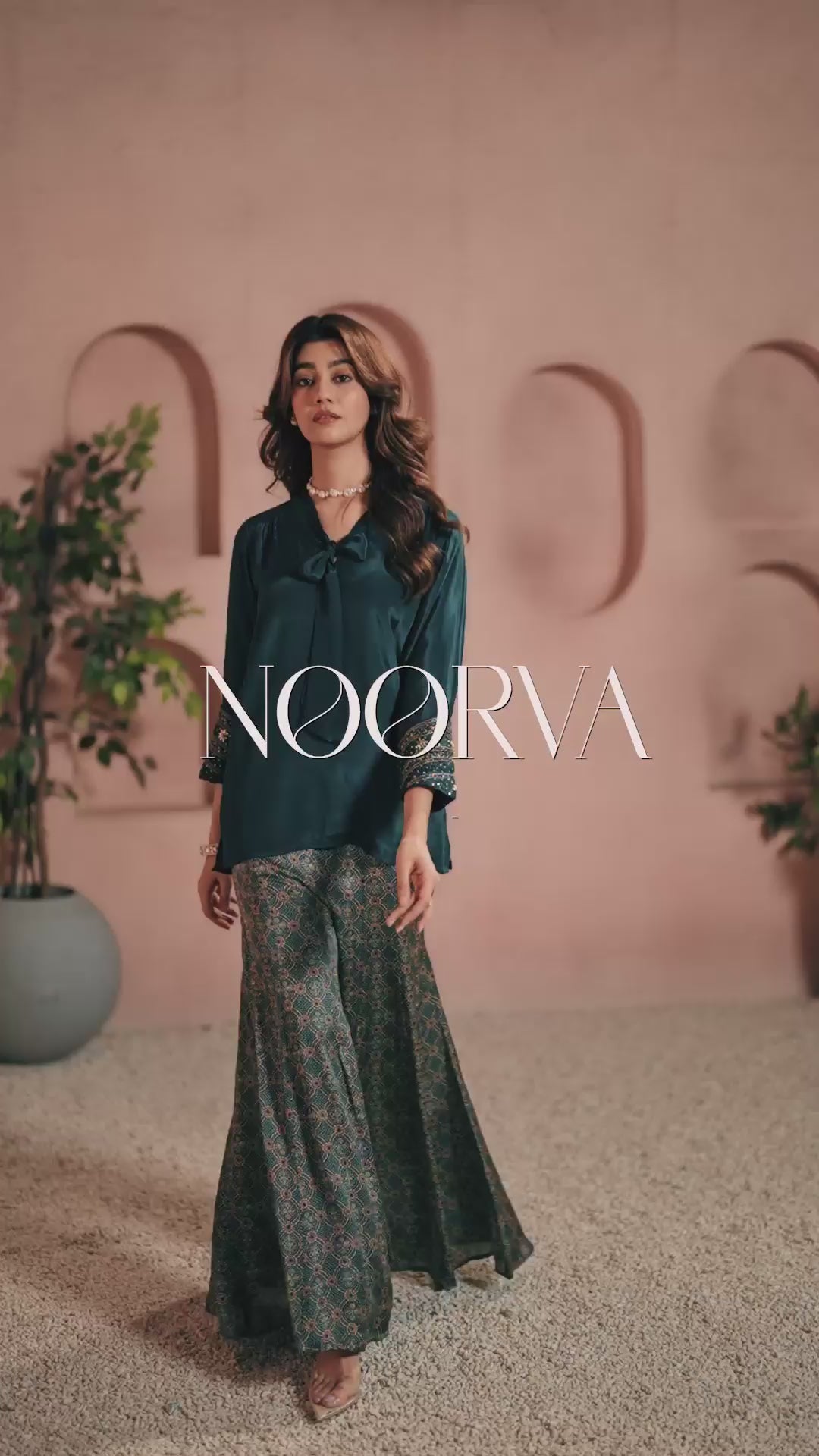 Bold and elegant, this peacock A-line coord set features intricate khat work, a sharp collared neckline, and full sleeves—making it a standout choice for modern festive wear.