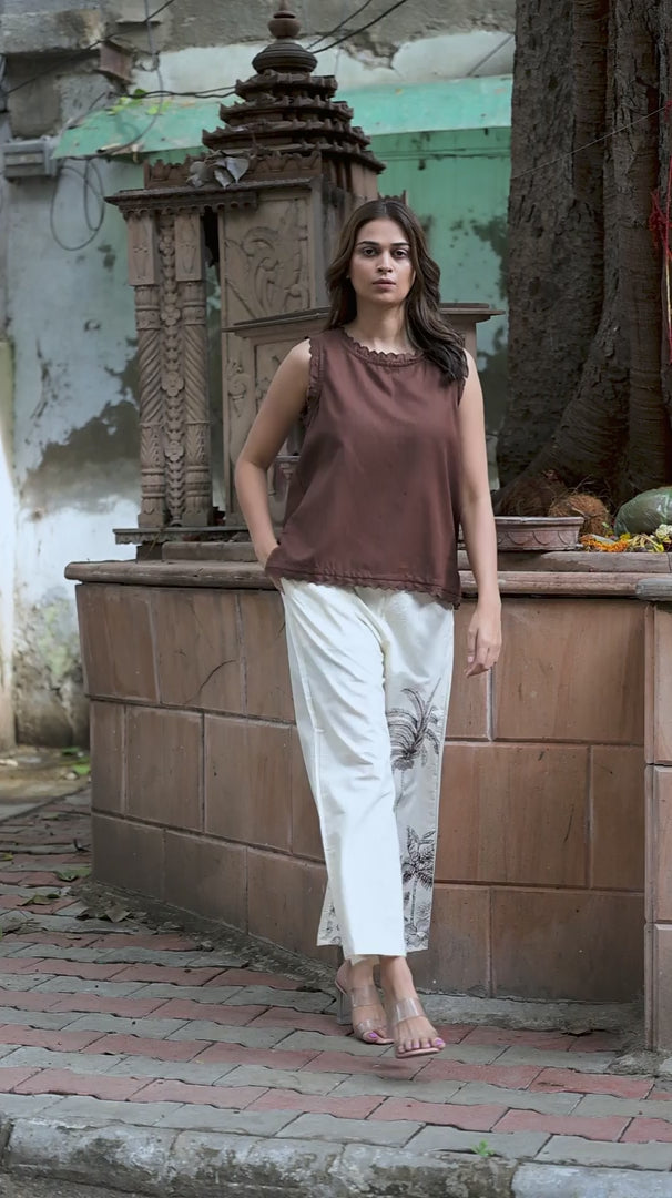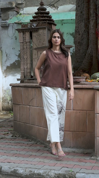 In rich brown tones, this set showcases a graceful round boat neckline and short sleeves, offering a perfect blend of everyday comfort and timeless sophistication.