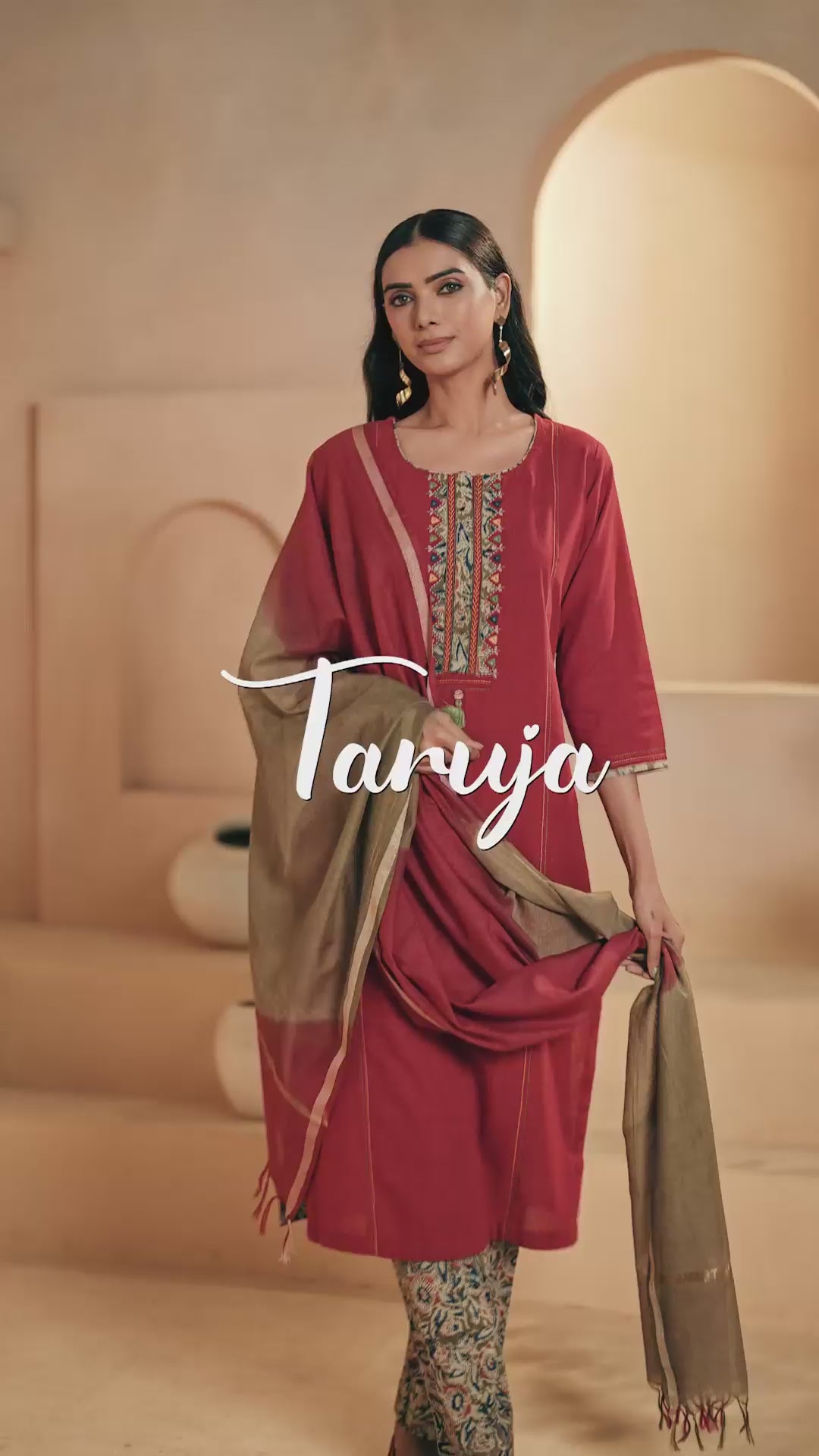 Bold and elegant, this maroon straight salwar suit features intricate machine embroidery, a tailored straight cut, and a sleek round neckline.