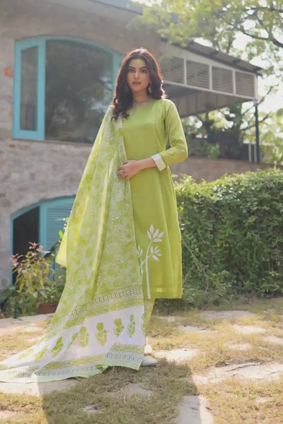 PAYAL Green Kurta Suit Set with Floral Embroidery