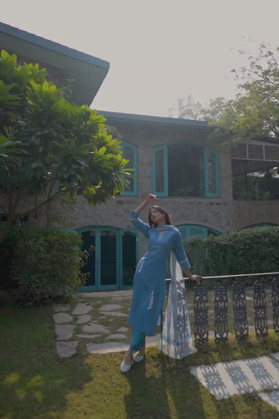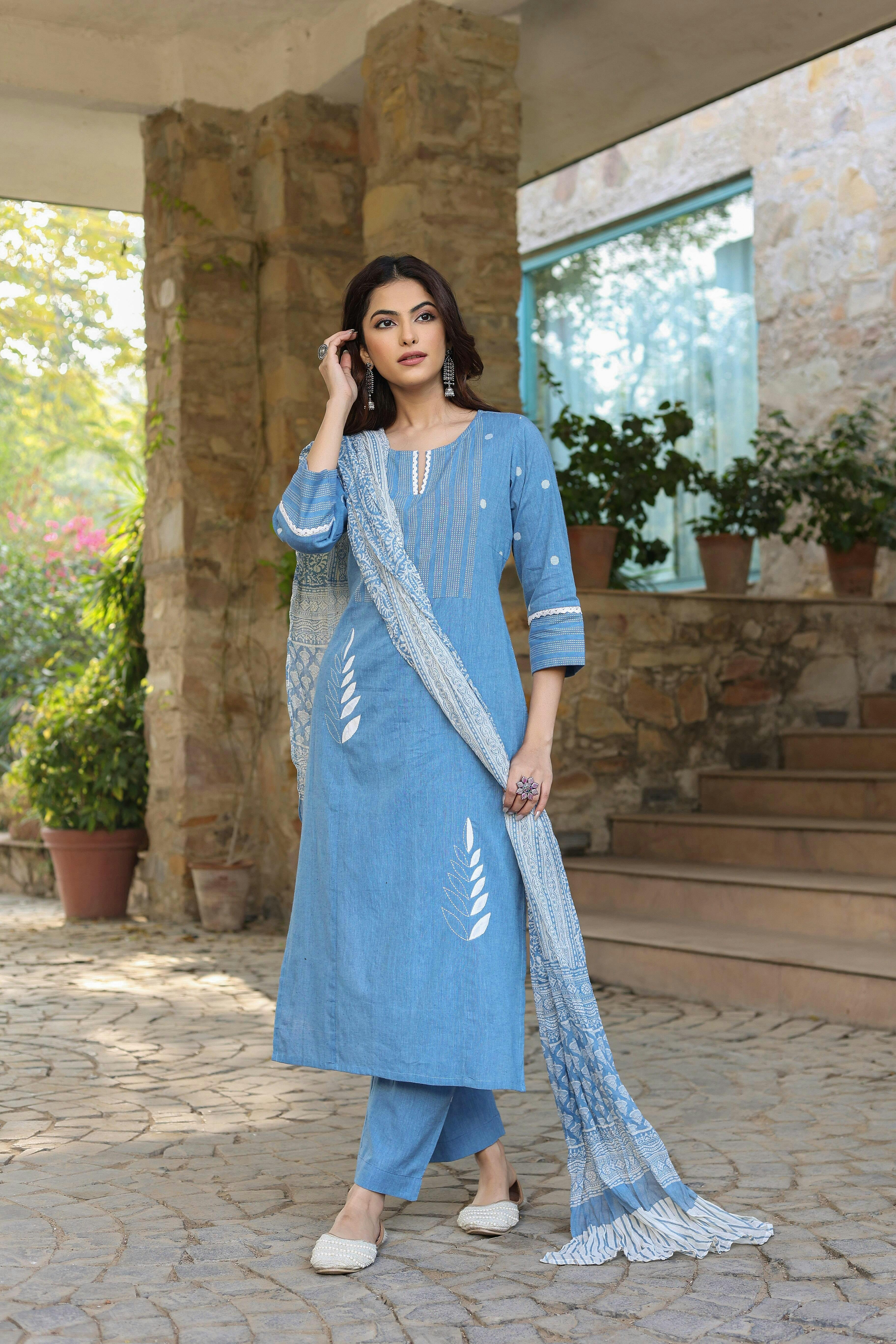 PAYAL Pestel Blue Kurta Suit Set with Petal Embroidery Detailing