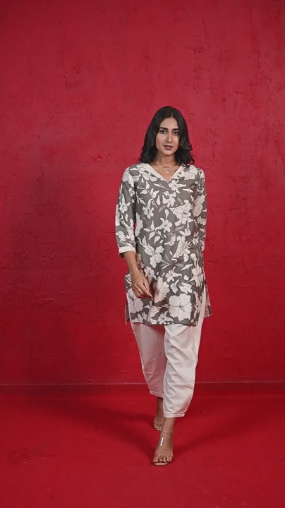 Refined Grey Co-ord Set with Fold-Cuff Sleeves