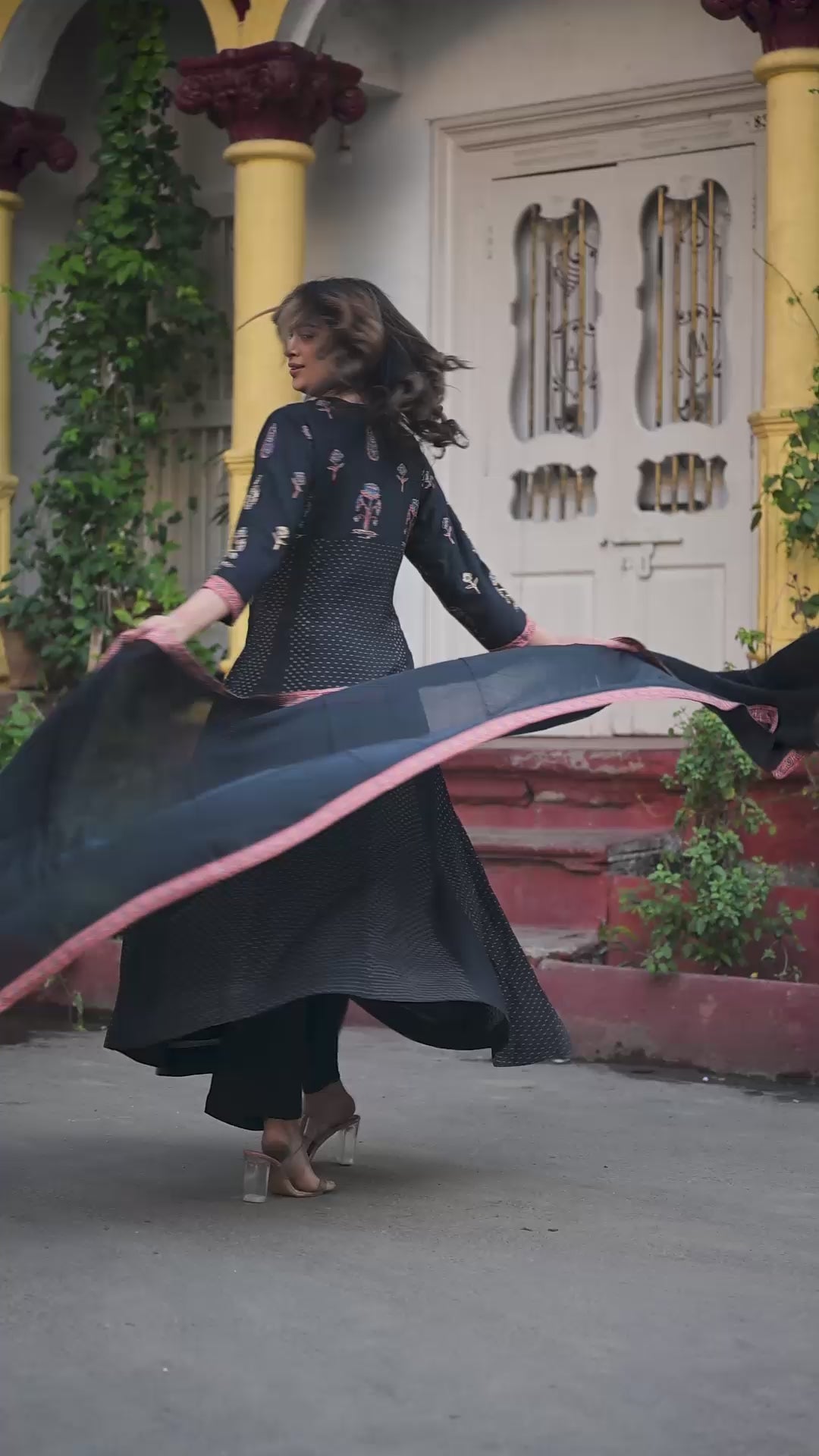 Rich Dola Silk Black Flared Suit Set