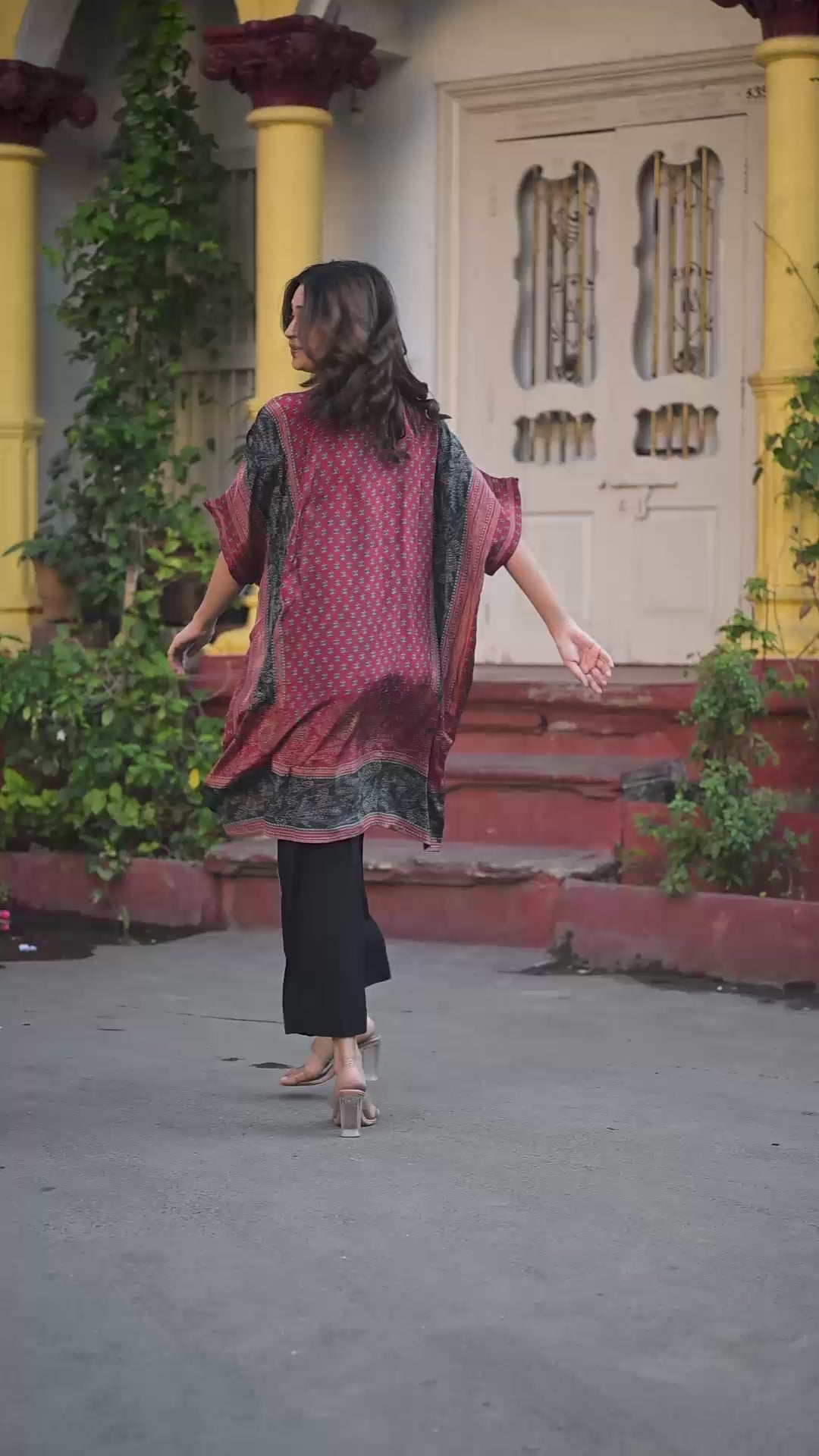 Designed in a rich maroon hue, this co-ord set showcases a classic round neckline, delicately finished with subtle khat work detailing.