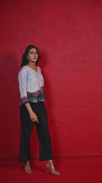 Effortlessly stylish blue co-ord set with V-neck, regular sleeves, and refined accents.